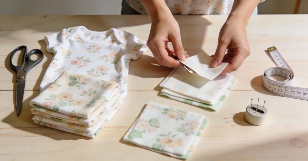 Das klingt unglamourös, ist aber praktisch perfekt: Alte, ausgeleierte Babybodys werden zu wunderbar weichen PutztĂŒchern. Die Stoffe sind hochwertig, saugfĂ€hig und fĂŒhlen sich deutlich besser an als gekaufte Lappen.